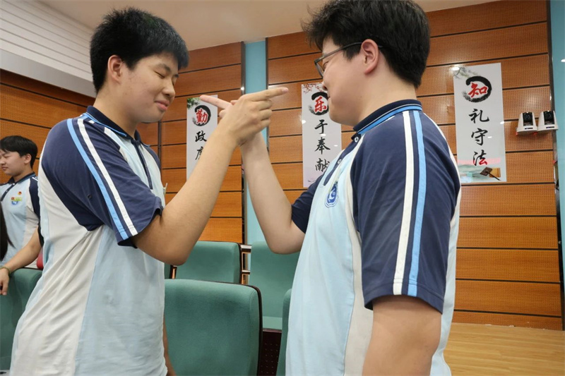 陈老师结合多年的心理辅导经验,向学生传授了健脑操、呼吸放松法、积极自我对话等实用有效的心理调适技巧,并引导同学们逐一体验,学生在舒缓中缓解焦虑,在快乐中放松心情。