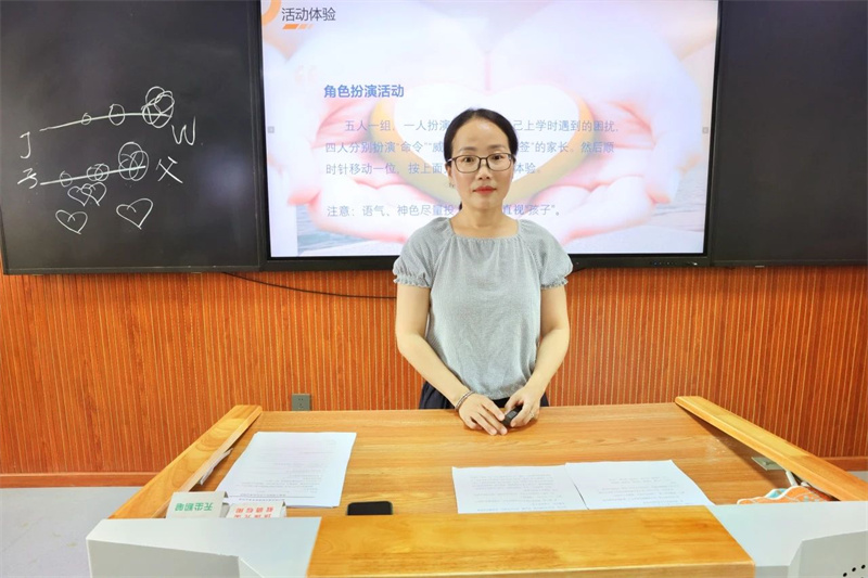 王建文、党金兰、夏金翠等成员怀揣着对教育事业的热忱,先后组织起面向家长的亲子沟通技巧讲座活动。活动中,老师们精心设计的环节,宛如精心编排的一场场精彩教育戏剧。他们运用小游戏、分组探讨、角色扮演、倾听与表达等多种生动有趣的方式,充分调动家长们的参与热情,讲座过程中家长们不再是被动的听众,而是积极的参与者,他们在实践中学习和领悟亲子沟通的技巧与方法,收获宝贵的家庭教育智慧,切实提升了家庭教育能力。这些面对家长的活动播撒下智慧的种子,在家长心中生根发芽,开出教育的繁花。