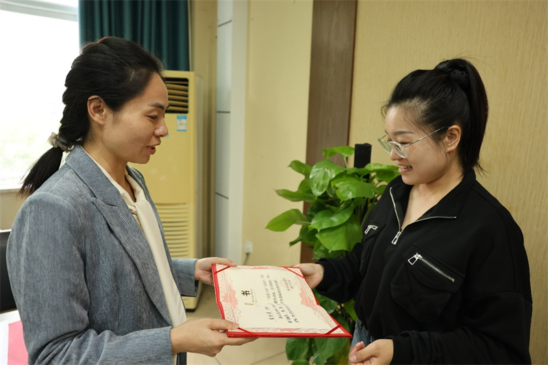 紧接着,青年教师代表陈梦思老师动情回应。她首先向学校的精心安排与师傅们的倾囊相助表达感谢,随后坚定表态:“未来将以谦逊的态度多听课、多反思,以扎实的行动勤备课、勤改进,力争快速站稳讲台、上好每一堂课,不辜负学校与师傅的信任。”