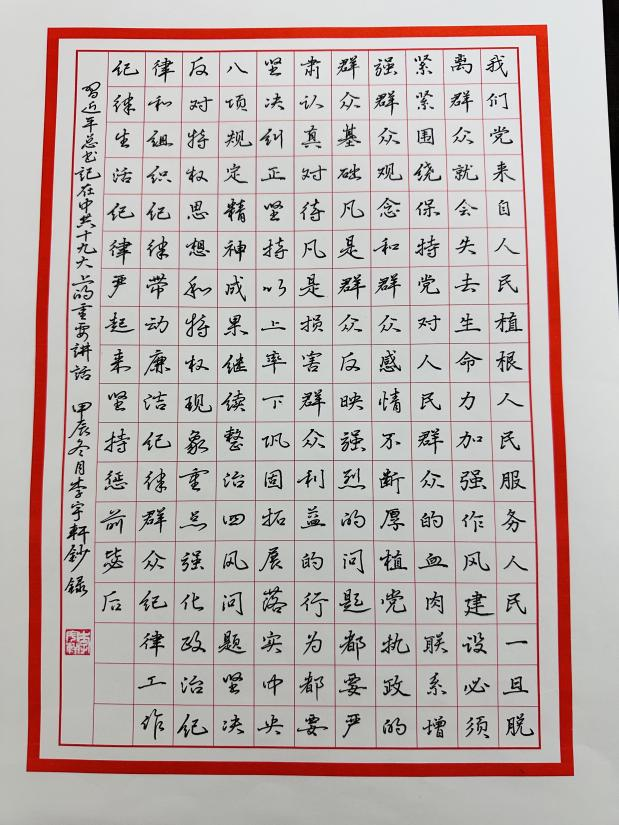 2024年12月李宇轩参加硬笔书法比赛作品